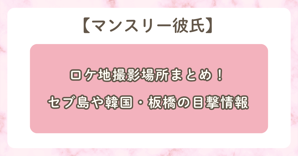 本記事では、2026年3月配信予定のNetflixドラマ『マンスリー彼氏』のロケ地や目撃情報、そして撮影場所に関する考察についてお届けしました。