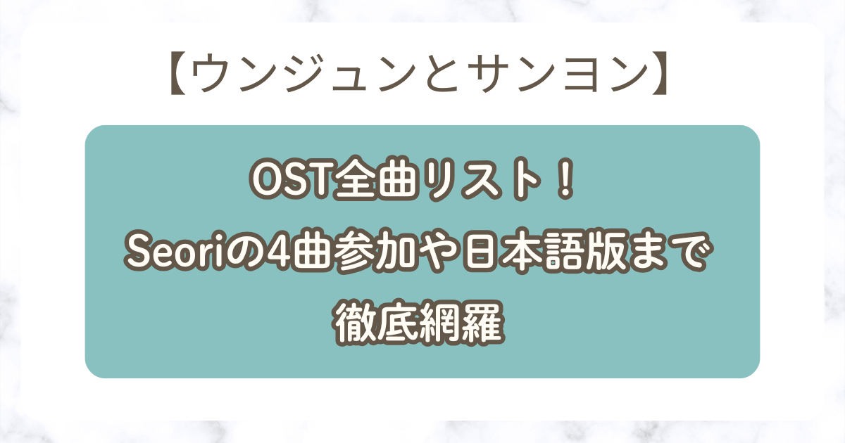 ドラマ『ウンジュンとサンヨン』は、その繊細なストーリーだけでなく、作品の世界観を完璧に表現した音楽(OST)でも高い評価を得ています。