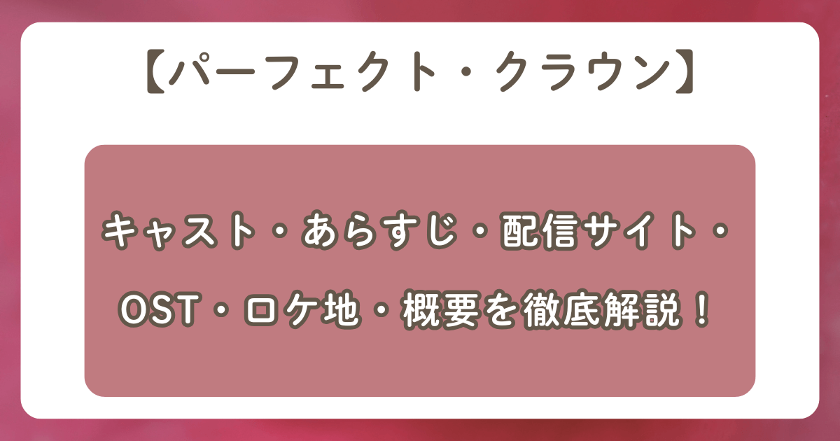 2026年4月3日よりDisney+で独占配信される『パーフェクト・クラウン』について、キャスト、あらすじ、配信サイト、OST、ロケ地、そして概要を徹底解説しました。