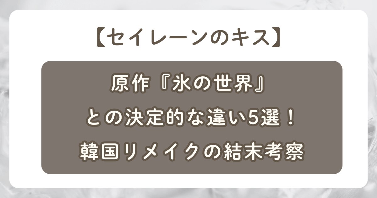 今回は、『セイレーンのキス』と原作『氷の世界』の決定的な違いと、制作の深層、そして気になる結末の考察をお届けしました。